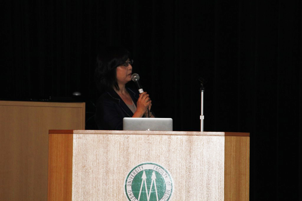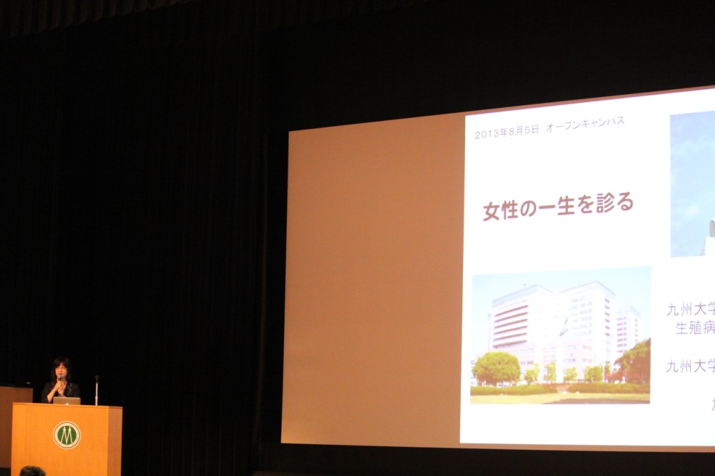 引き続き、医学教育学 吉田素文教授からは、入学後のカリキュラムや、MD-PhDコース、平成26年度入学生から受講する基幹教育についてなど、本学における多様な教育システムの説明がありました。最後に、生殖病態生理分野 加藤聖子教授の講話「女性の一生を診る」がありました。加藤教授は、臨床と研究、医師がどのような生活を送っているのかを、所属である産婦人科を例にとり紹介しました。参加者は説明会を通して医学の知識に触れ、新たな刺激となったようでした。