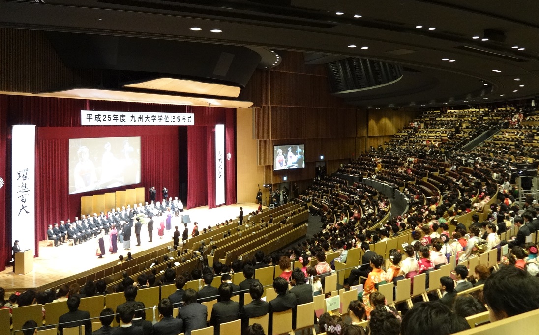 式の最後には、九州大学混声合唱団のリードにより、卒業生が全員で学生歌「松原に」を歌い上げました。