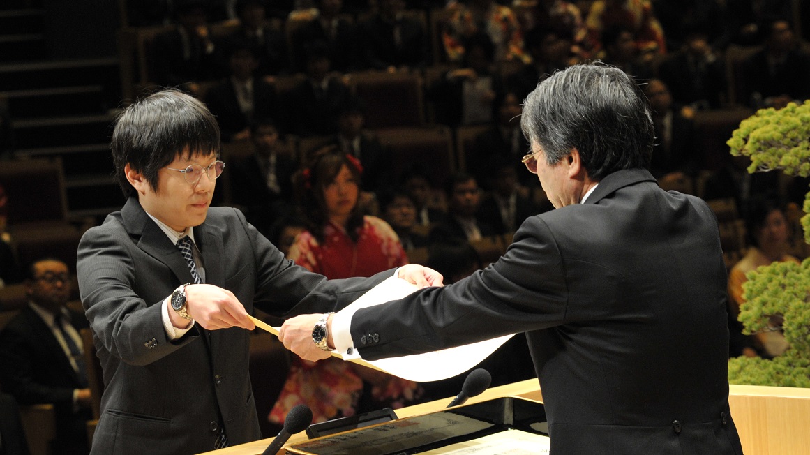 ![]() 学位記授与 医学科代表 山本俊亮さん |