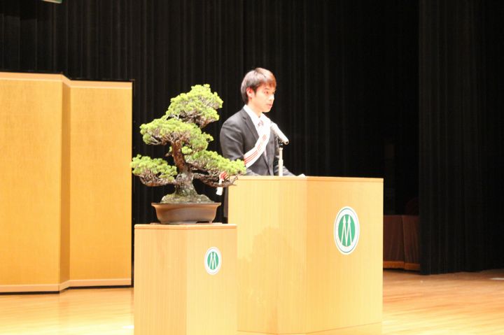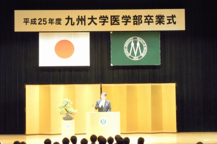 諸先輩方からの祝辞に対し、山本俊亮さんが医学科学生を、そして山下 実さんが生命科学科学生を代表し、答辞を述べました。答辞では、本学ならびに本学部に感謝するとともに、九州大学で学んだ多くの事柄をもとに我が国の将来の医療ならびに医学研究に貢献したいとの決意が述べられました。