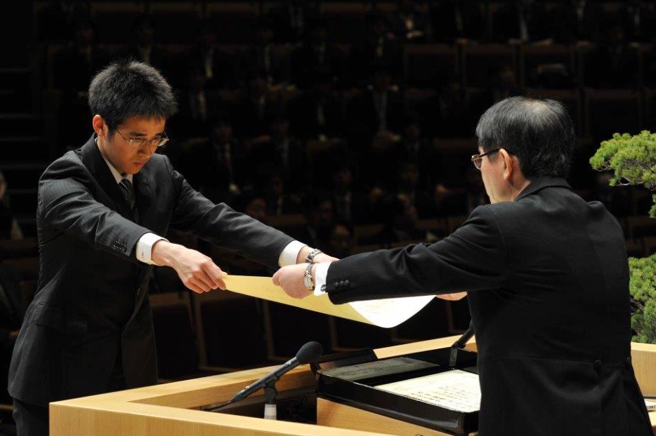 午後からは同会場で大学院の学位記授与式が行われ、修士学位記、専門職学位記、博士学位記が各総代に授与され、2,287名が大学院を修了しました。