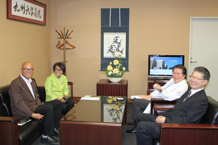 医学研究院からは住本研究院長、加藤副研究院長が出迎え、日本とフィリピンの医学研究や教育及び今後の両大学の交流の発展について意見交換を行いました。その後、九州大学病院の石橋病院長、そしてアジア遠隔医療開発センターを訪問されました。