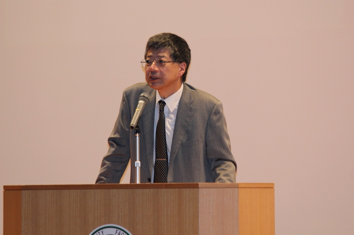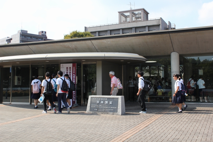 住本英樹医学部長は挨拶で、九州大学医学部医学科でのカリキュラムの概略を紹介し、臨床医として就業した後の大学院進学や、卒後すぐの基礎医学者の進路、そしてMD-PhDコースなど、医師、研究者としての多様な進路について触れられ、「それぞれの時期に助けてくれる先生が揃っています。皆さまの九州大学医学部への参加、まずは医学部医学科への参加を心待ちにしています。」と述べられました。