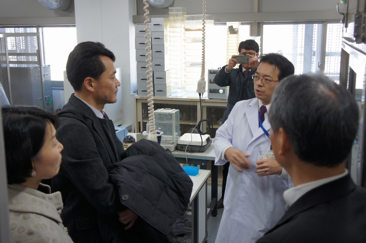 会談の後は、康副研究院長の案内により耳鼻咽喉科学分野、医化学分野の研究室をご覧頂きました。