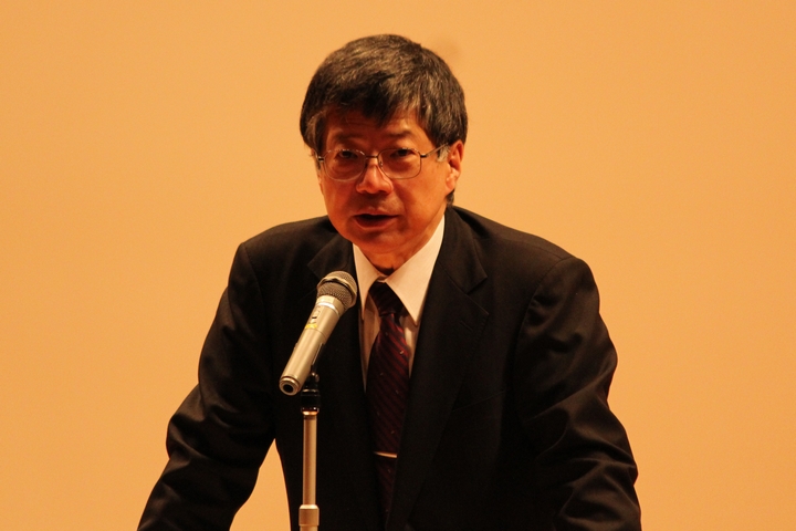 久保千春総長が新入生への告辞で、「“広い学問への興味”,“国際的視野と活動”,“政治への関心”の三つのことをお願いするとともに,失敗を恐れず,チャレンジ精神で学生生活を送ってください」と述べました。