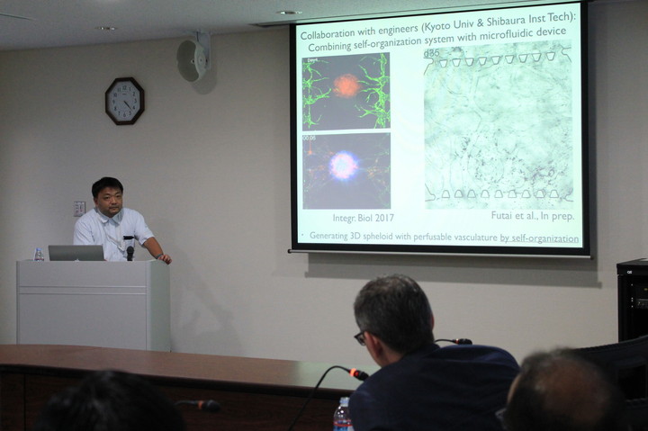 つづいて、意見交換会の場が設けられ、九州大学側からの話題提供として、三浦教授、清水教授、康副研究院長、鴨打教授が、それぞれ自身の研究内容についてスライドを交えて説明されました。イリノイ大学の各教授からも多くの質問やご意見を頂き、活発な意見交換会となりました。