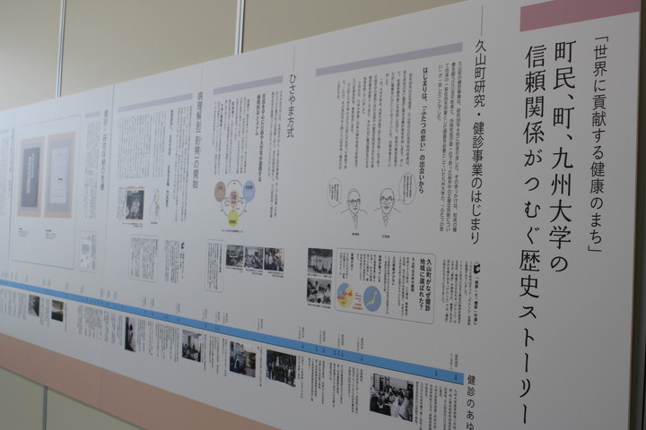 久山町と九州大学では1961年から久山町民の方々を対象に、疫学調査「久山町研究」を行ってきました。久山町研究のはじまりは、久山町の初代町長である江口浩平町長の町民の健康を願う思いと、当時死因第一位であった脳卒中の正確な診断について一般住民を対象とした調査を必要としていた九州大学の、「ふたつの思い」が一致したことによります。