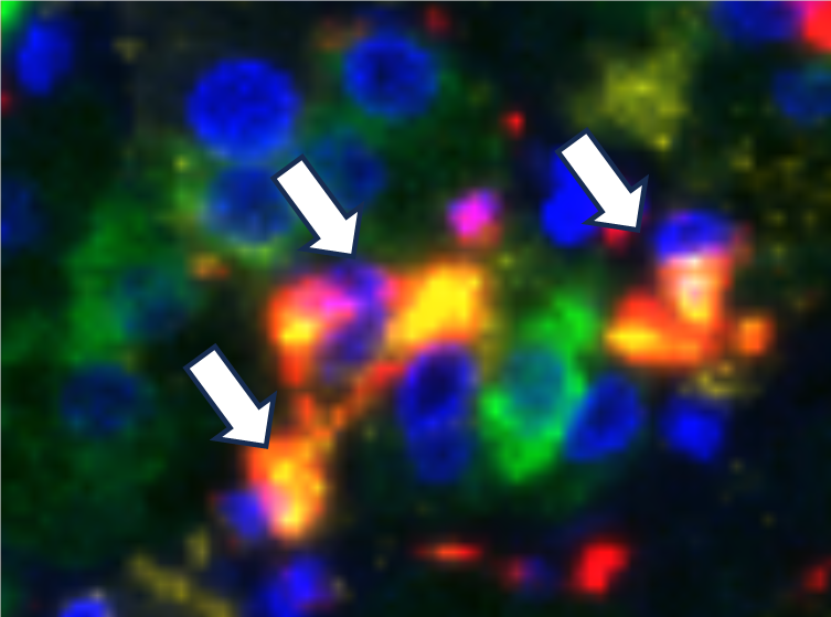 脂質関連マクロファージ(オレンジ)、コルチゾール産生細胞(緑)