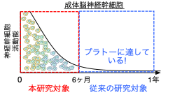 加齢に伴って、マウスの海馬神経幹細胞の増殖能、ニューロン産生能は急速に失われる (ヒトでも同様)。その結果、将来的な認知機能の低下につながるのではないかと考えられている。神経幹細胞機能低下は、アルツハイマー病による認知機能低下との関連も指摘されている。本研究では、従来研究では着目されてこなかった、加齢の初期段階のメカニズムを明らかにした。