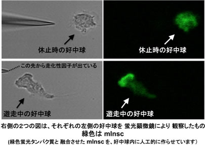 本研究成果は、病原菌から体を守るしくみを深く理解し、それを応用するための基礎となるものです。私達の体は、常に、病原性の細菌や真菌による感染の危機に直面しています。それを防いでいるのが白血球の1つである好中球です。病原菌が体内に侵入すると、好中球はいち早くそれを感知して血管から出て侵入部位に遊走し、そこで病原菌を食べて殺菌を行います。この時の遊走が的確に効率的に起こるためのしくみ(分子機構)が、今回の研究で明らかになりました。