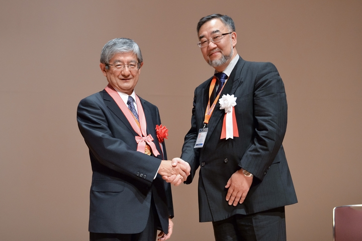 平成26年8月28日にパシフィコ横浜で開催された授賞式では、一般社団法人日本癌治療学会 理事長 西山正彦さまより内藤教授にメダルが手渡され、その後受賞記念講演が行われました。