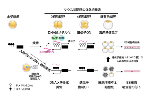 pancRNAのそれぞれは、特定の遺伝子とペアで機能しうると考えられます。これまで、遺伝子機能をOFFにするノンコーディングRNAはよく知られていました。しかし、pancRNAは、遺伝子機能をONにするメカニズムに関与することで、ほ乳類個体発生のごく初期から機能していることが明らかになりました。