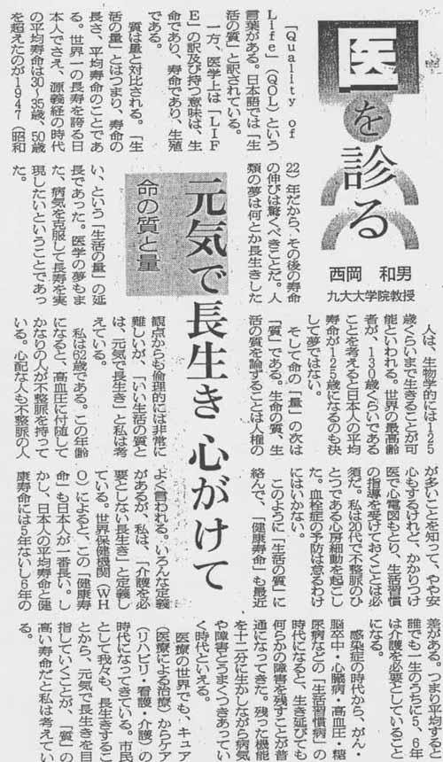 医を診る 西岡和男(九大大学院教授)