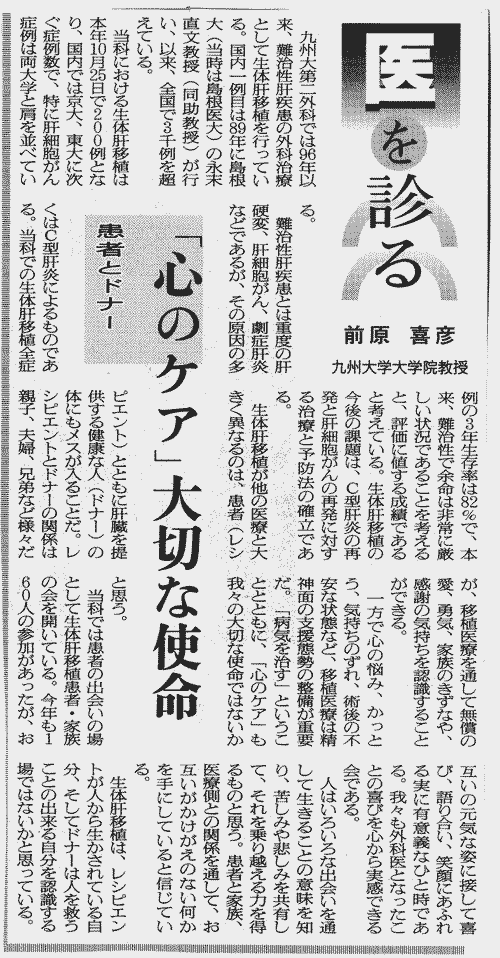 医を診る 前原喜彦(九大大学院教授)
