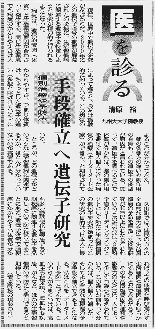 医を診る 清原 裕(九大大学院教授)