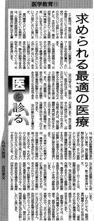 医を診る 吉田素文(九大大学院教授)