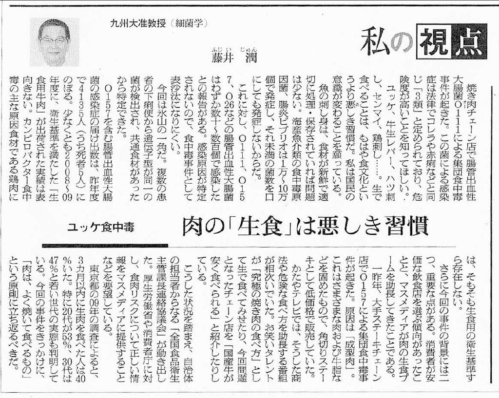 「肉の「生食」は悪しき習慣-私の視点 藤井潤(九大准教授)」