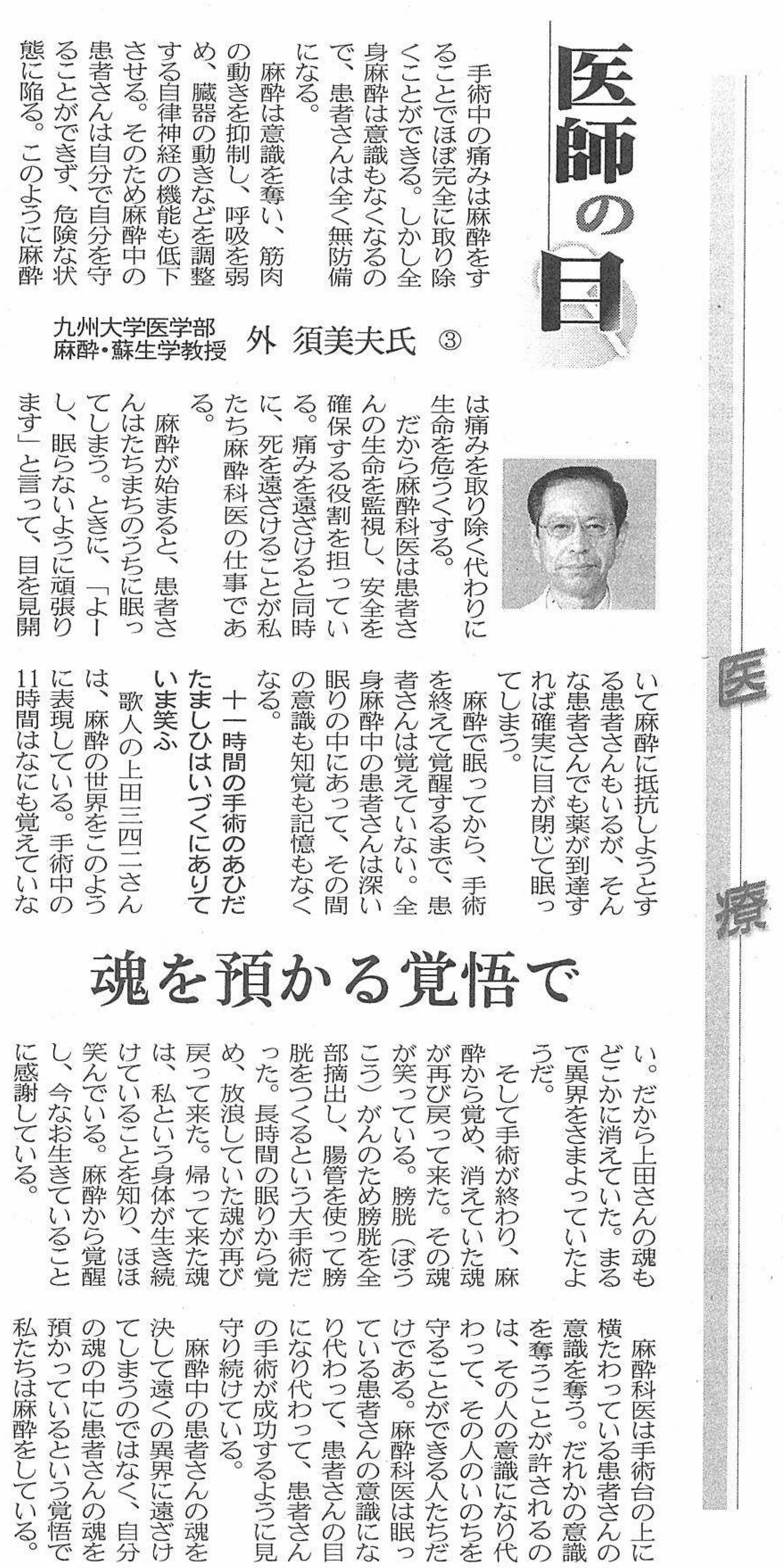 日本経済新聞 2012年9月6日(木)夕刊「医師の目 魂を預かる覚悟で」から、日本経済新聞社様の許諾を得て転載しています。無断複製転載することは禁止致します。