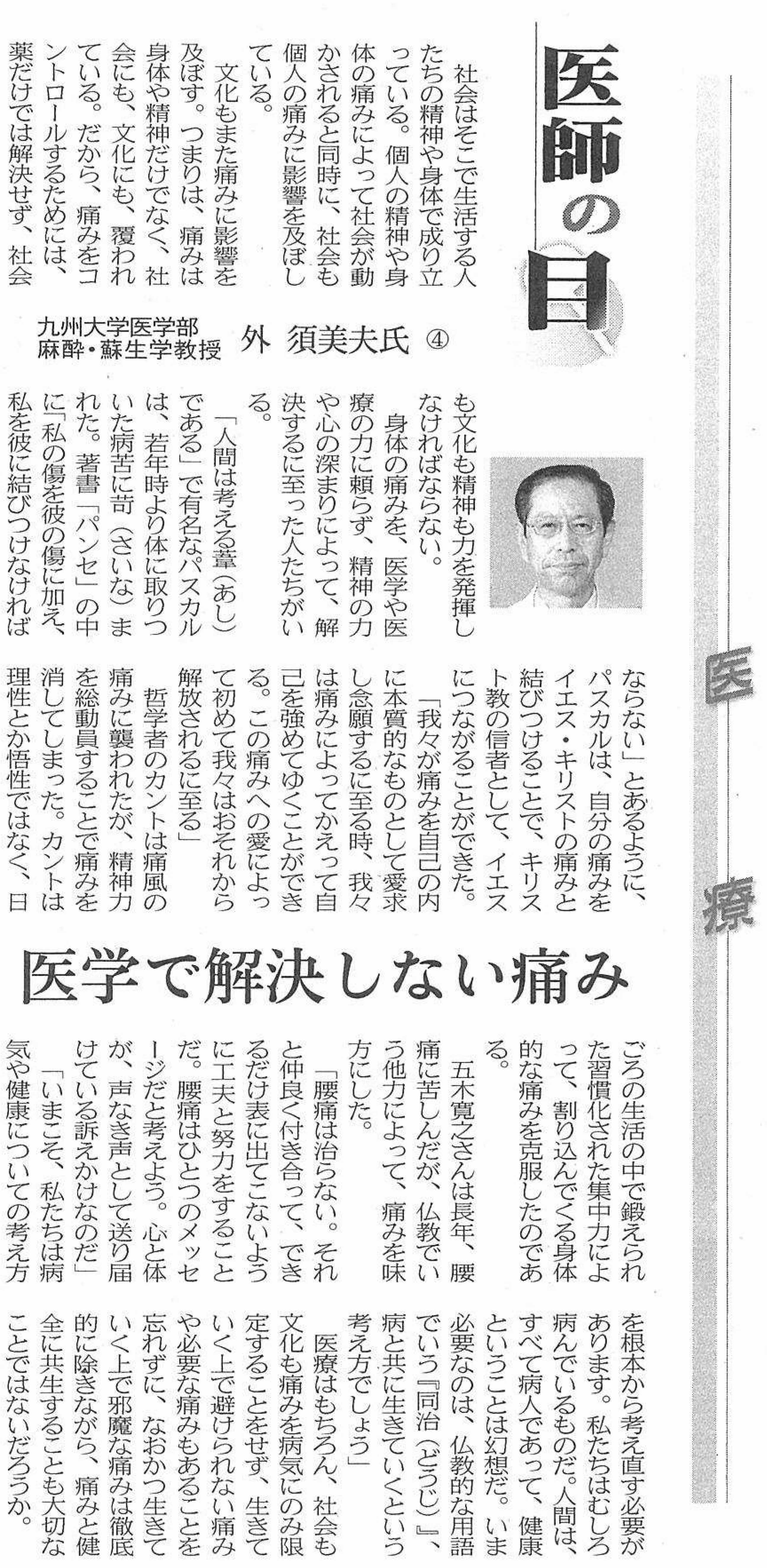 日本経済新聞 2012年9月13日(木)夕刊「医師の目 医学で解決しない痛み」から、日本経済新聞社様の許諾を得て転載しています。無断複製転載することは禁止致します。