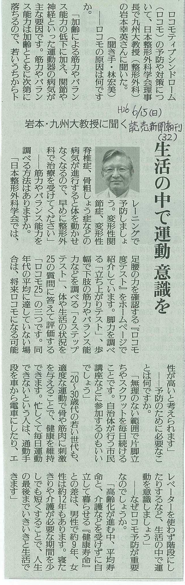 2014年6月15日 読売新聞 朝刊 「生活の中で運動 意識」を、読売新聞社の許諾を得て転載しています。無断複製転載することは禁止致します。