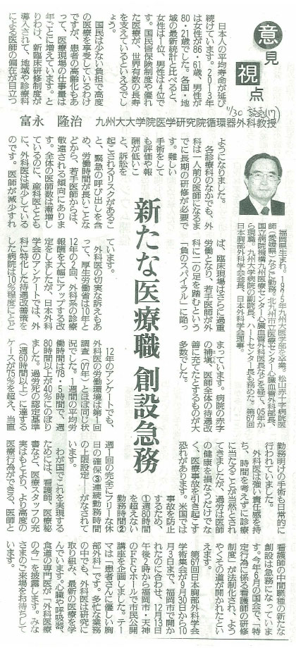 2014年11月30日 読売新聞 朝刊 「新たな医療職 創設急務」 を、読売新聞社の許諾を得て転載しています。無断複製転載することは禁止致します。