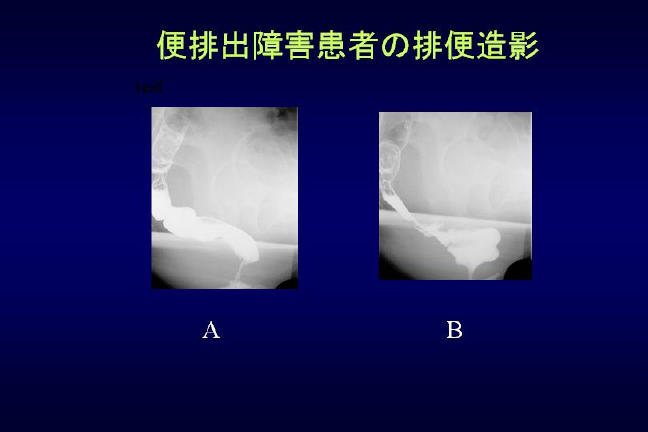 A子さん(50)は排便困難の苦しみから解放されるのに約3年かかった。直腸と隣り合わせの膣との壁が薄いために、力んでしまうと膣の方に直腸が膨らんで排便できなくなる。通常の状態でレントゲンを撮っても腸には器質的な異変がない。原因が分らずに、九州大学病院での排便造影検査などで初めて分った。レクトシール(直腸膣壁弛緩症)と診断された。また、いつも残便感があって知らずに失禁すると訴える患者さん。下痢と便秘と腹痛が繰り返して起こり、乗り物にも乗れないと訴える過敏性腸症候群と診断されたケースもある。いずれも最初に診てもらった医療施設では原因はつかめていない。