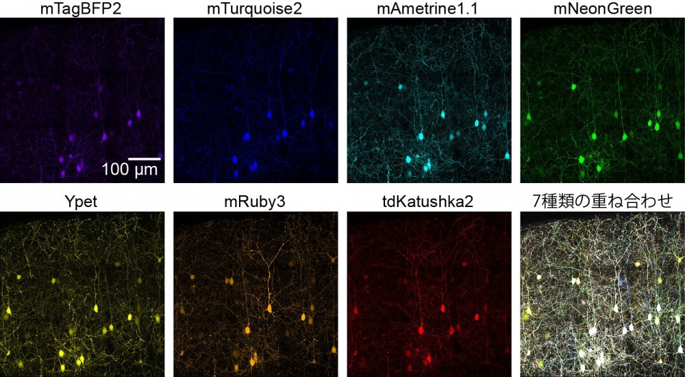 7種類の蛍光タンパク質を用いた神経回路の“超”多色標識