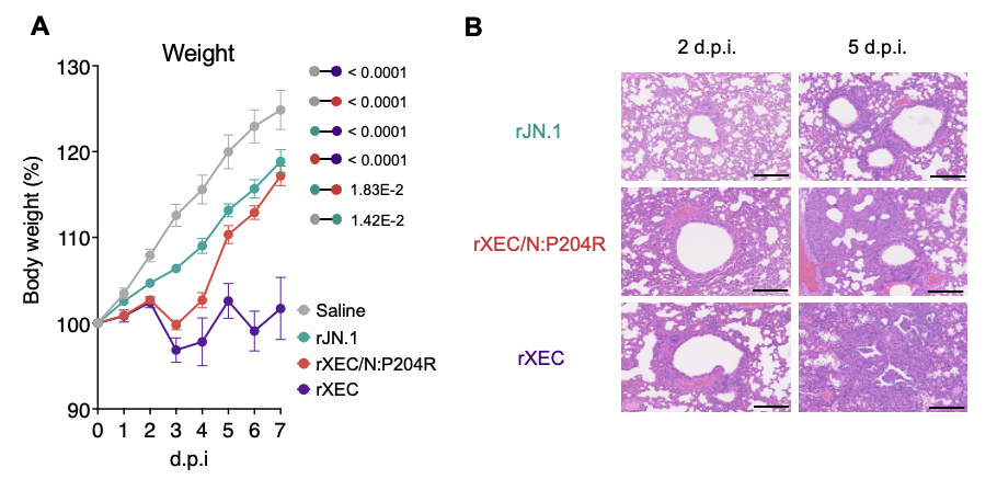 図2.ハムスターモデルにおける XEC 変異株およびその変異体の性状解析