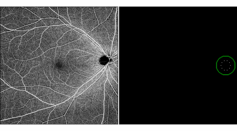 - 光干渉断層計 (OCT) を応用し網膜血管など眼底の血管に特化した撮像法。OCT 信号の時間変化から血流を推定し、網膜血管を非侵襲的に可視化する。