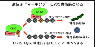 | 細胞が筋肉となるメカニズムを解明 ~遺伝子マーキング(目印)機構の存在の発見~ |