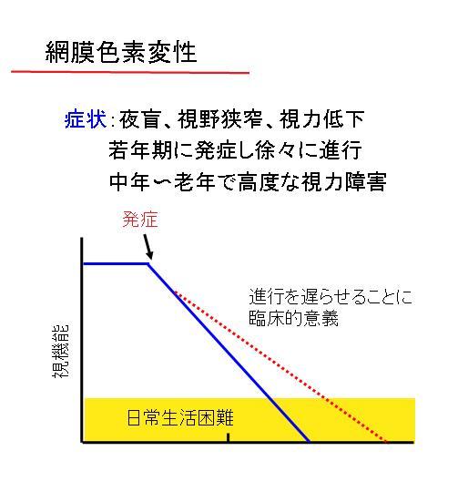 初めは暗いところでものが見にくい、いわゆる「鳥目」の症状から次第に視野狭窄や視力低下が進んでくる。難病の一つ、網膜色素変性症である。ものが見えるということは、網膜(カメラのフィルムにあたる部分)でとらえた光を視細胞が電気信号に変換して、視神経を通じて脳に伝達することで成り立つ。網膜色素変性は、視細胞が徐々に失われるために、次第に視力が無くなっていく遺伝性の病気だ。日本では約5千人に一人の割合で発症し、失明の恐れもあるが有効な治療法はまだ見つかっていない。
