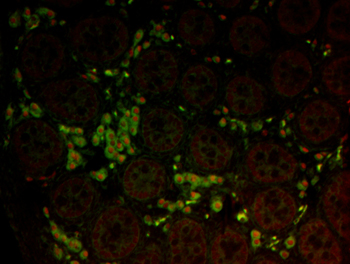 - 第二に、同様に既に樹立した胎仔型ライディッヒ細胞特異的EGFP発現マウスからソーティングによって細胞を回収し、マイクロアレイ解析により遺伝子発現プロファイルを明らかにする。各発生段階の胎仔型ライディッヒ細胞を解析することにより細胞の分化の過程を明らかにすると同時に、成獣型ライディッヒ細胞における遺伝子発現パターンとの比較・解析により胎仔型ライディッヒ細胞を特徴づける遺伝子の発現パターンを明らかする。