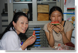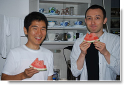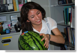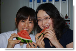 じめじめした梅雨を乗り切るべく、スイカパーティを行いました。先生が持ってきて下さった超特大サイズのスイカは、甘くておいしい、最高の大当たりスイカでした!ごちそうさまでした!