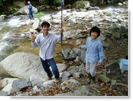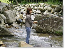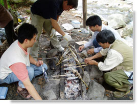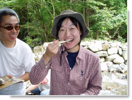 魚が苦手な人も炭火で焼いたマスにかぶりつき?