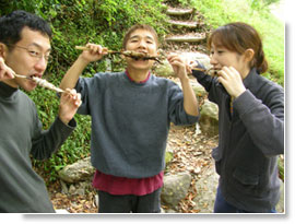 諸橋先生手作りの竹串でこだわりの塩焼き。